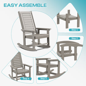 - 🔥【Premium TRUE HDPE Material】Made from upgraded PIPOPA HDPE (High-Density Polyethylene), this rocking chair offers superior quality and safety compared to typical PE or PS materials. Unlike traditional wood chairs, it’s waterproof, weather-resistant, fade-resistant, and resistant to chipping, peeling, cracking, and rotting, making it an ideal choice for outdoor use.