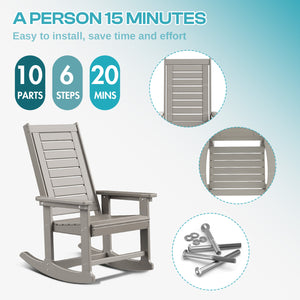 - 🔥【Ergonomic & Comfortable】UPGRADED rocking chair is perfectly designed for indoors or out. Slatted high back & seating design sheds rainwater and dries quickly. 120°elevation allows you to have a wonderful rocking.;