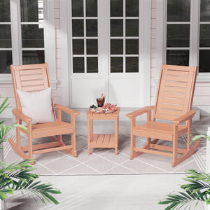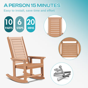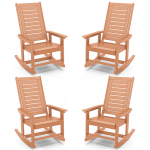 Outdoor Rocking Chair Set of 4,HDPE Oversized Rocking Chair Outdoor,High Back Rocking Patio Chairs for Porch Garden Balcony,Teak