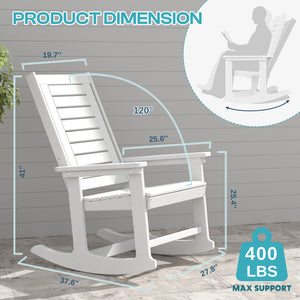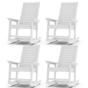 Outdoor Rocking Chair Set of 4,HDPE Oversized Rocking Chair Outdoor,High Back Rocking Patio Chairs for Porch Garden Balcony,White