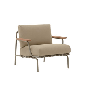 Settle Outdoor Lounge Chair invites you to settle into its comfort, providing an ideal setting for enjoying the outdoors all day. Its airy steel frame, complete with visible belts and intricate details, enhances its visual allure from all angles, while its armrests, made from FSC™-certified (FSC-C028824) sapele mahogany wood, add a warm, tactile feel. Settle’s steel frame is galvanized, primed and powder-coated, ensuring corrosion resistance for long-lasting use. The plush cushions, made with quick-dry foam and durable outdoor textiles, offer fast-drying resilience in rain showers and year-round durability when used with an outdoor cover.